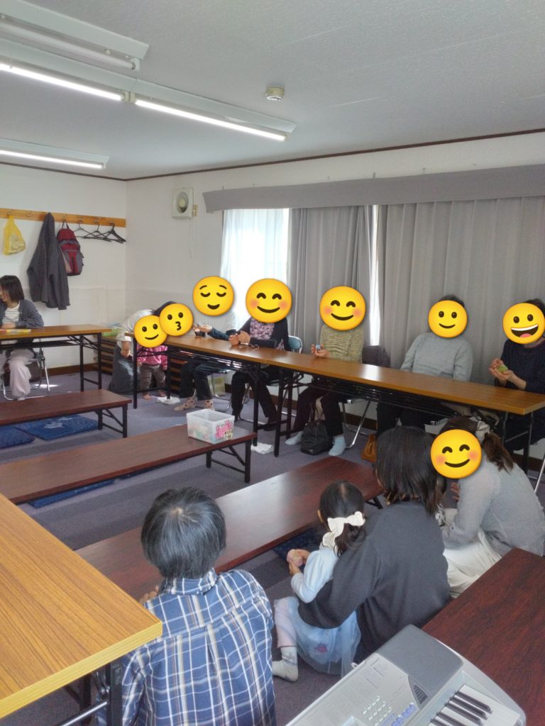 お昼は一品持ち寄りの茶話会と称しましたが、みんなでわいわいと持ち寄られたぶどうやお赤飯を楽しむ会になりました。いつもより食べすぎてしまった子ども達のぽっこりお腹がかわいい会でした。