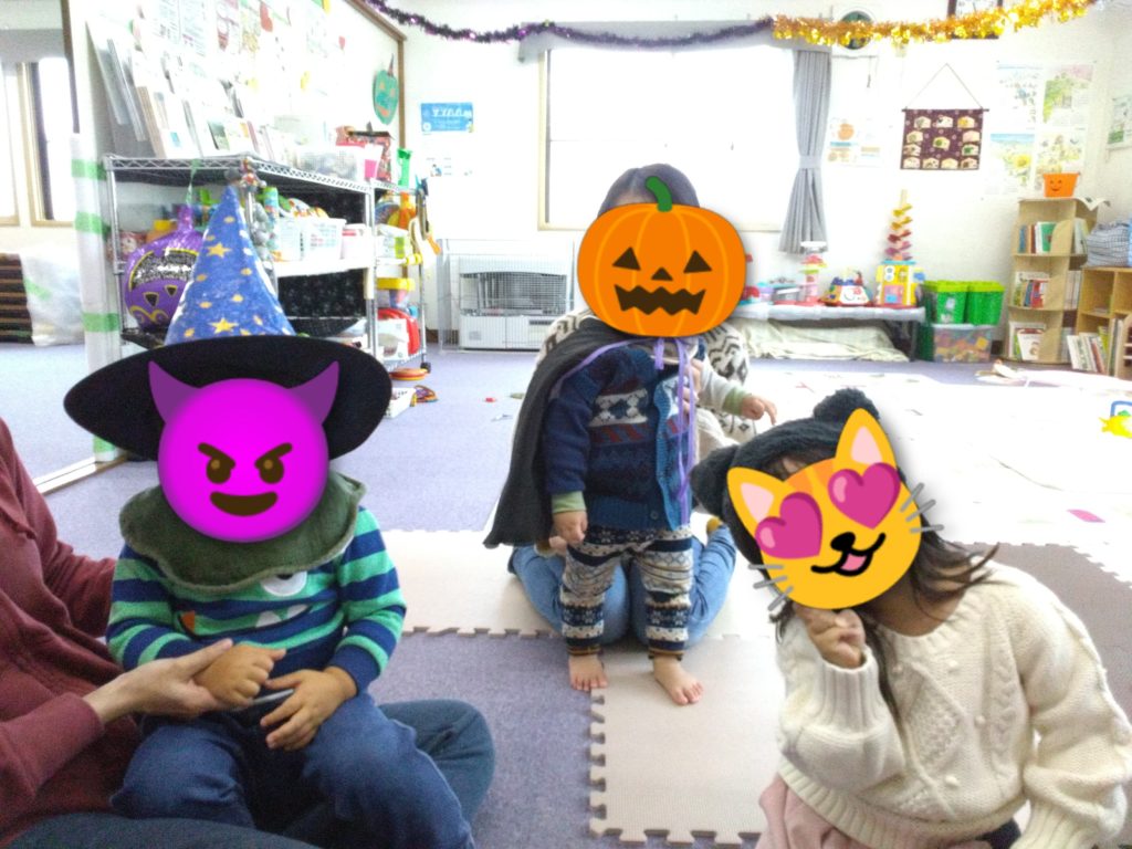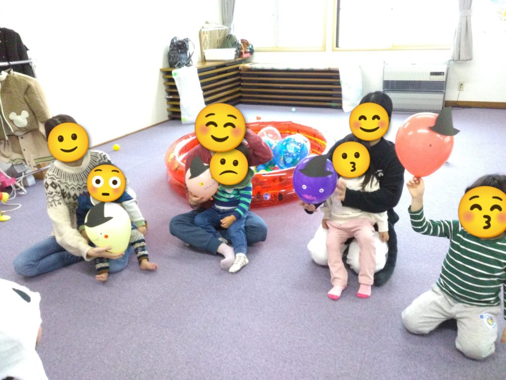 31日はハロウィンには素敵なオバケたちが来てくれました。一緒に風船おばけを作って、手遊び、歌、絵本を楽しみました。