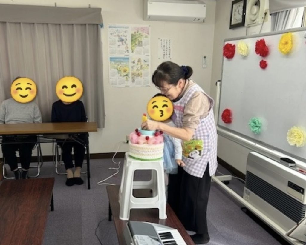 10日、いきいきサロンとの交流日にあそべばい〜しょ♪の11歳の誕生日をしました。ケーキを前にハッピーバースディトゥーユーを歌い、エプロンシアターで『ネズミくんのびっくり誕生日』で盛り上がりました。