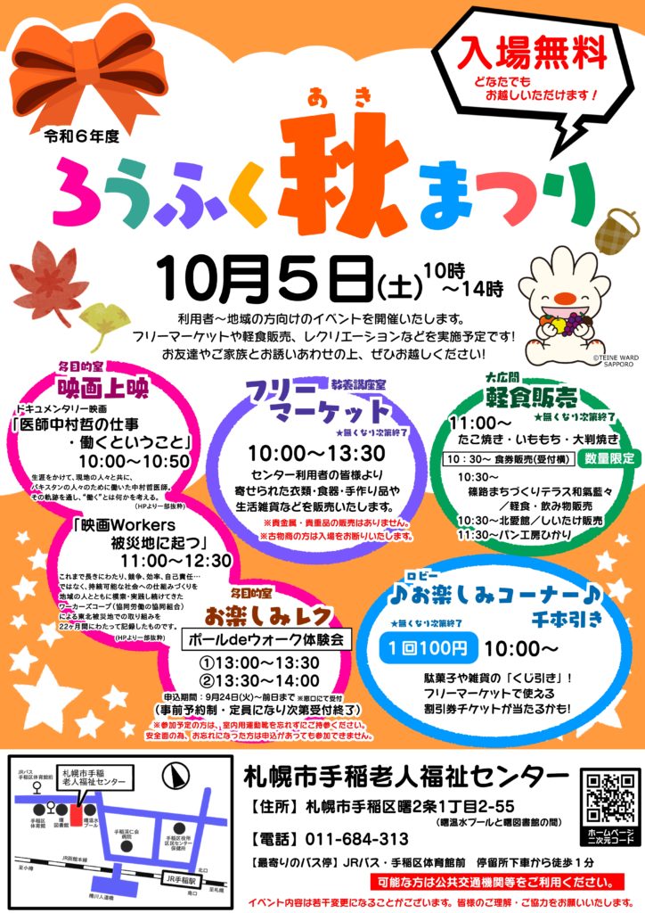 当日はフリーマーケットや軽食、食べ物販売・お楽しみコーナー・映画会を開催予定です。